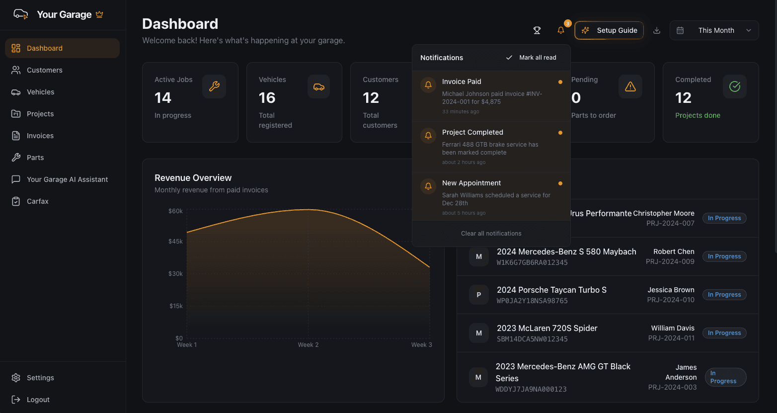 Ask questions about customers and projects. Generate reports in natural language. Pull insights from your garage data.